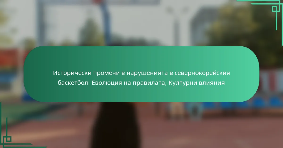 Севернокорейският баскетбол има специфични правила за нарушения, които се различават от международните стандарти, оформени от културни влияния и уникално управление. Разбирането на тези различия е от съществено значение за играчите и треньорите, които се запознават с играта в Северна Корея.