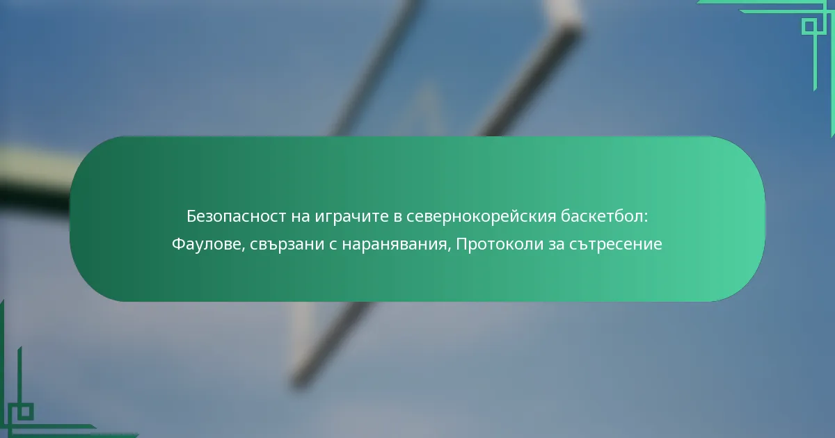 Безопасността на играчите в севернокорейския баскетбол е критичен въпрос, особено що се отнася до нарушения, свързани с наранявания, и протоколи за управление на сътресения. Нарушенията, свързани с наранявания, се прилагат строго, за да се защитят играчите, докато структуриран подход към управлението на сътресенията осигурява на атлетите подходяща грижа и насоки. Въпреки това, културните нагласи, повлияни от националната гордост, могат да усложнят приоритизирането на индивидуалната безопасност в спорта.